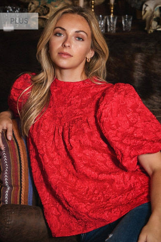 Plus Jacquard Balloon Sleeve Blouse