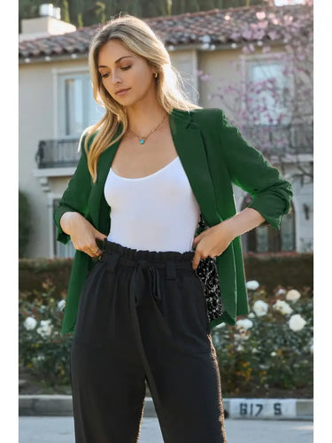 Plus Solid Woven Collared Blazer